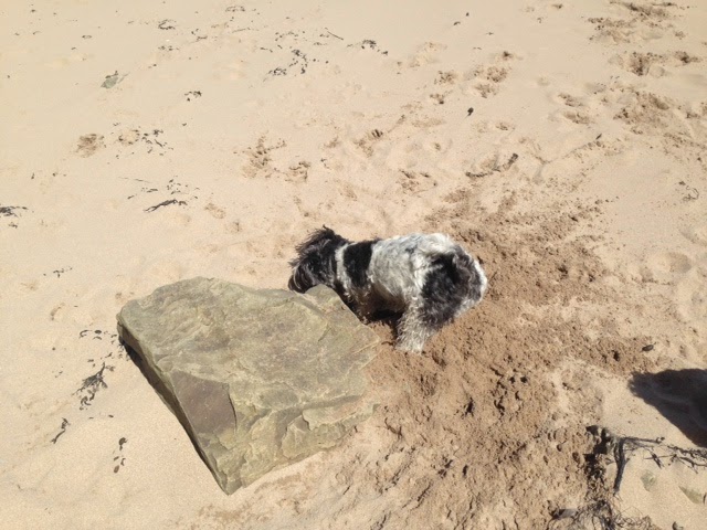 There was a stream running down the beach and into the sea, I splashed about in it but Holly jumped over it, she doesn't like wet paws!