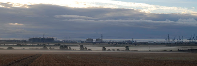 The weather forecast wasn't too promising but we headed off to the beach. Just as we got out of the village we looked across the fields and saw the first signs of a serious Autumn, misty fields!