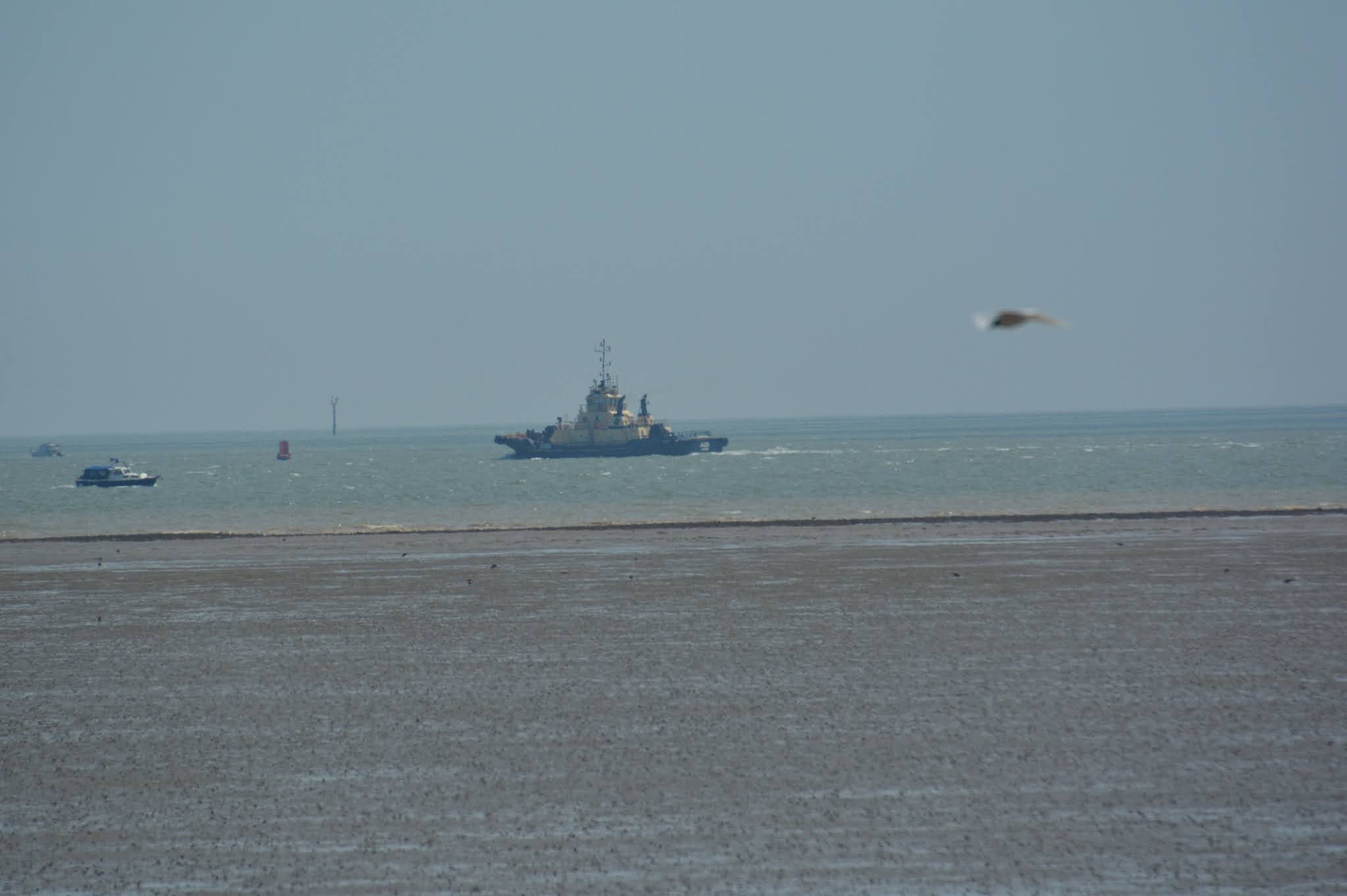 Out on the sea we saw a river tug heading back towards the Thames and Holly suggested it may be looking for rubber boats!