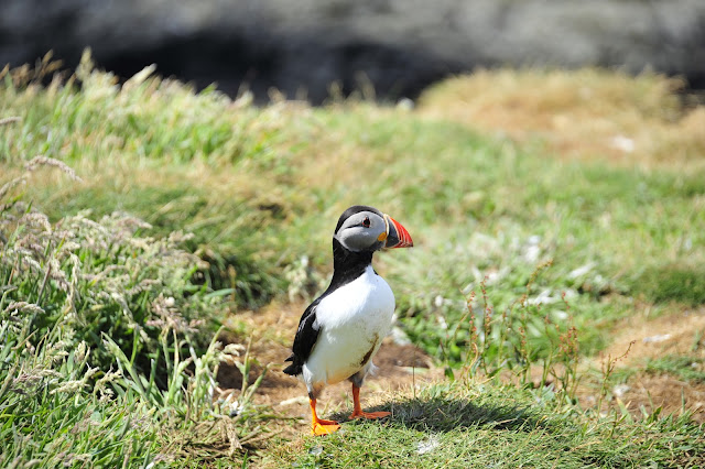 The animals like rabbits have been left on the island and Puffins have taken over the rabbit burrows as nesting holes.