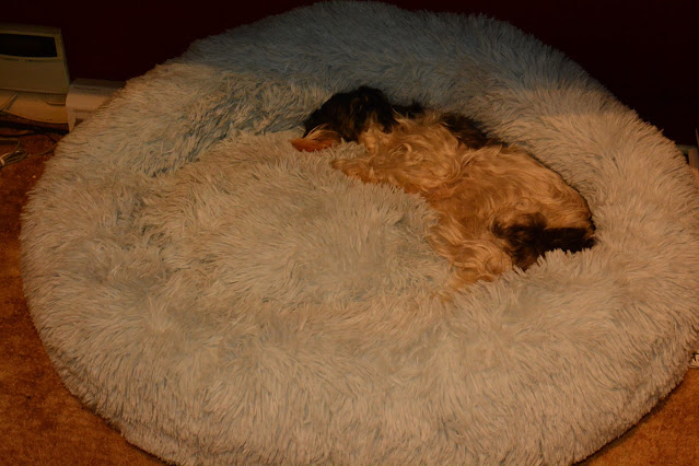 It's been right chilly today and it looked like it was going to snow again. I spent most of the day tucked up in my new bed. One good thing is that once I roll up in the fluff it is right warm and comfortable!
